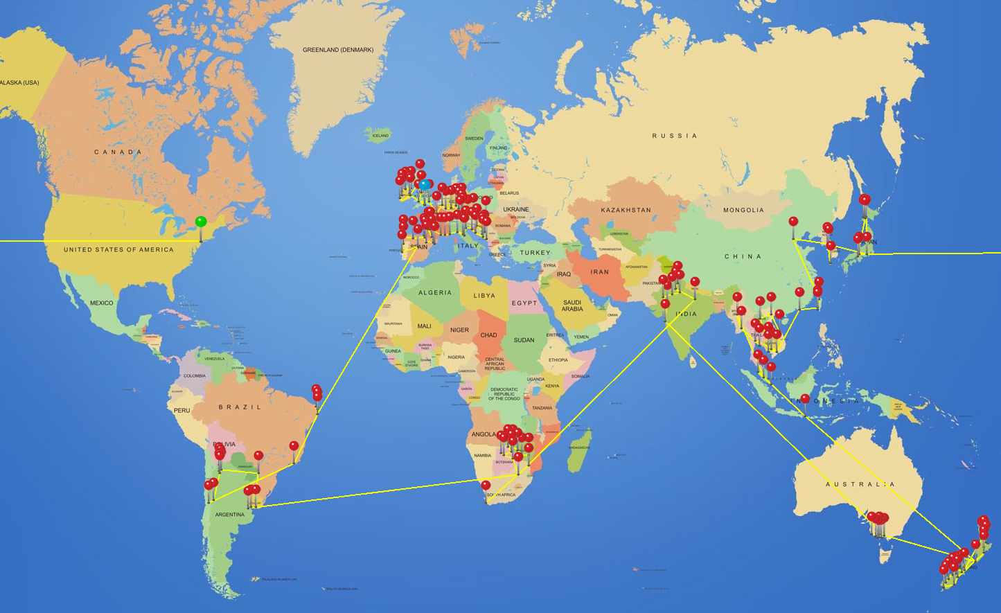 AMY: We visited 42 countries plus Hong Kong (which John thinks should count as a separate country, but it’s not…it’s China). The countries were (in order): Japan, South Korea, North Korea, Taiwan, China, Vietnam, Cambodia, Laos, Thailand, Myanmar, Malaysia, Singapore, Indonesia, New Zealand, Australia, India, South Africa, Zimbabwe, Botswana, Argentina, Uruguay, Chile, Brazil, Spain, Portugal, France, Monaco, Italy, Slovenia, Croatia, Bosnia & Herzegovina, Montenegro, Hungary, Austria, Germany, Luxembourg, Belgium, England, Wales, Scotland, Ireland, and Northern Ireland.