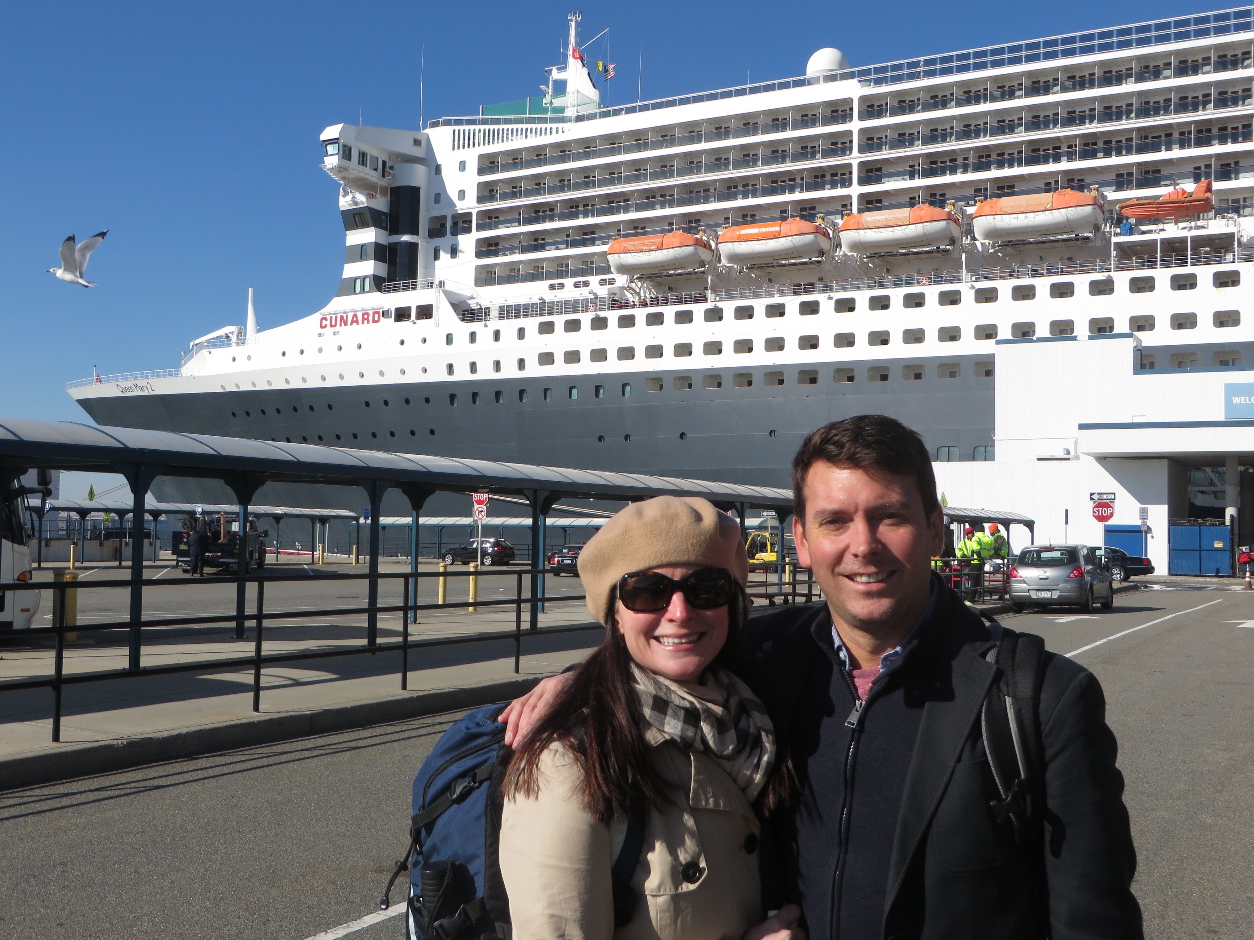 AMY: We knew John’s parents were joining us but then my mom surprised us! She just showed up at dinner the first night on the ship. I was speechless. It’s been an amazing 7-day, trans-Atlantic journey with our parents on the QM2!