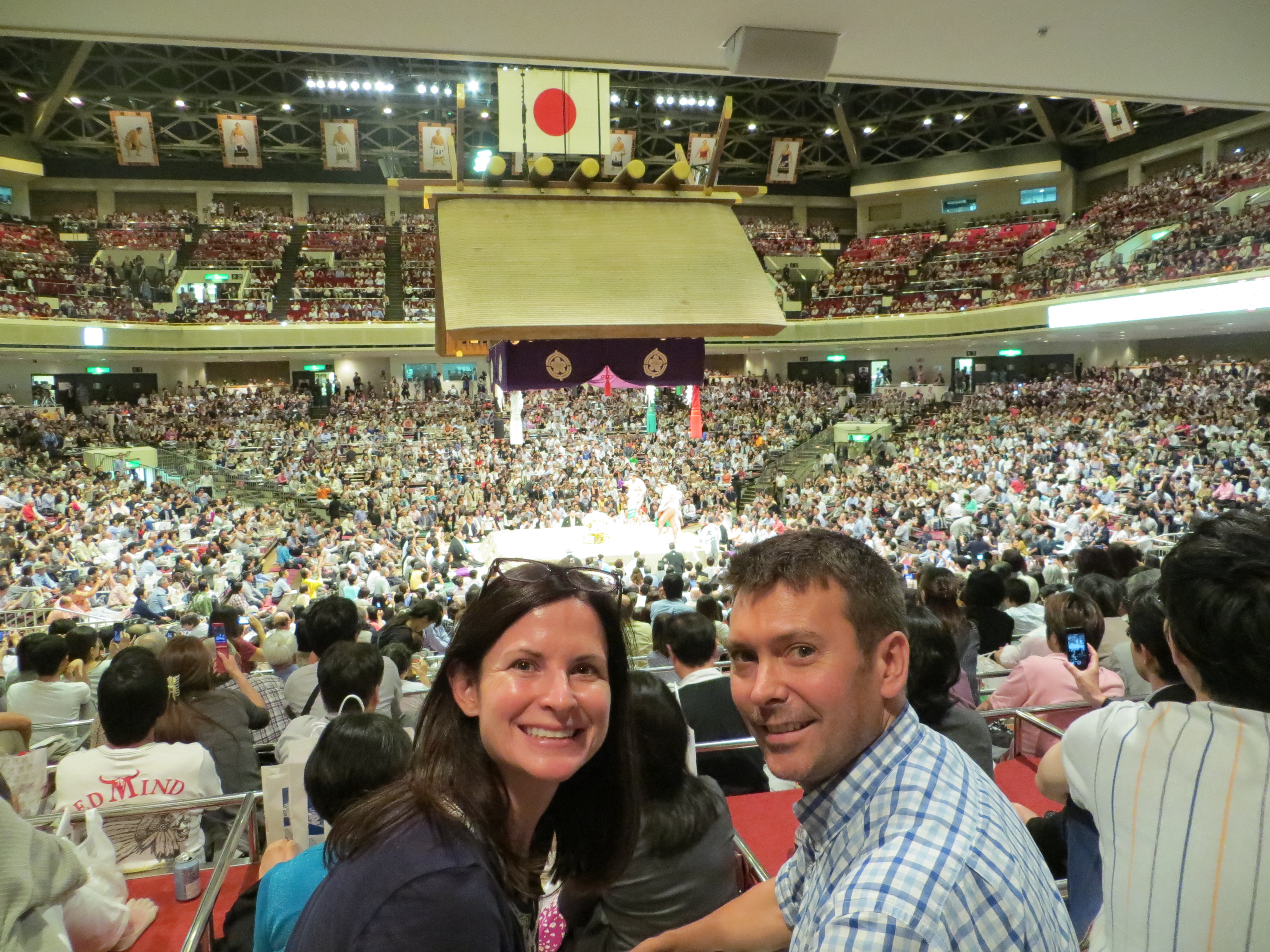 We got the iPhone back later that day. We moved to a centrally-located tourist hotel the next day. We got over our jetlag, and we went to the sumo finals (thanks to Elizabeth). We’ve checked out great neighborhood shops and restaurants, toured temples and shrines, and met really nice people. For example: