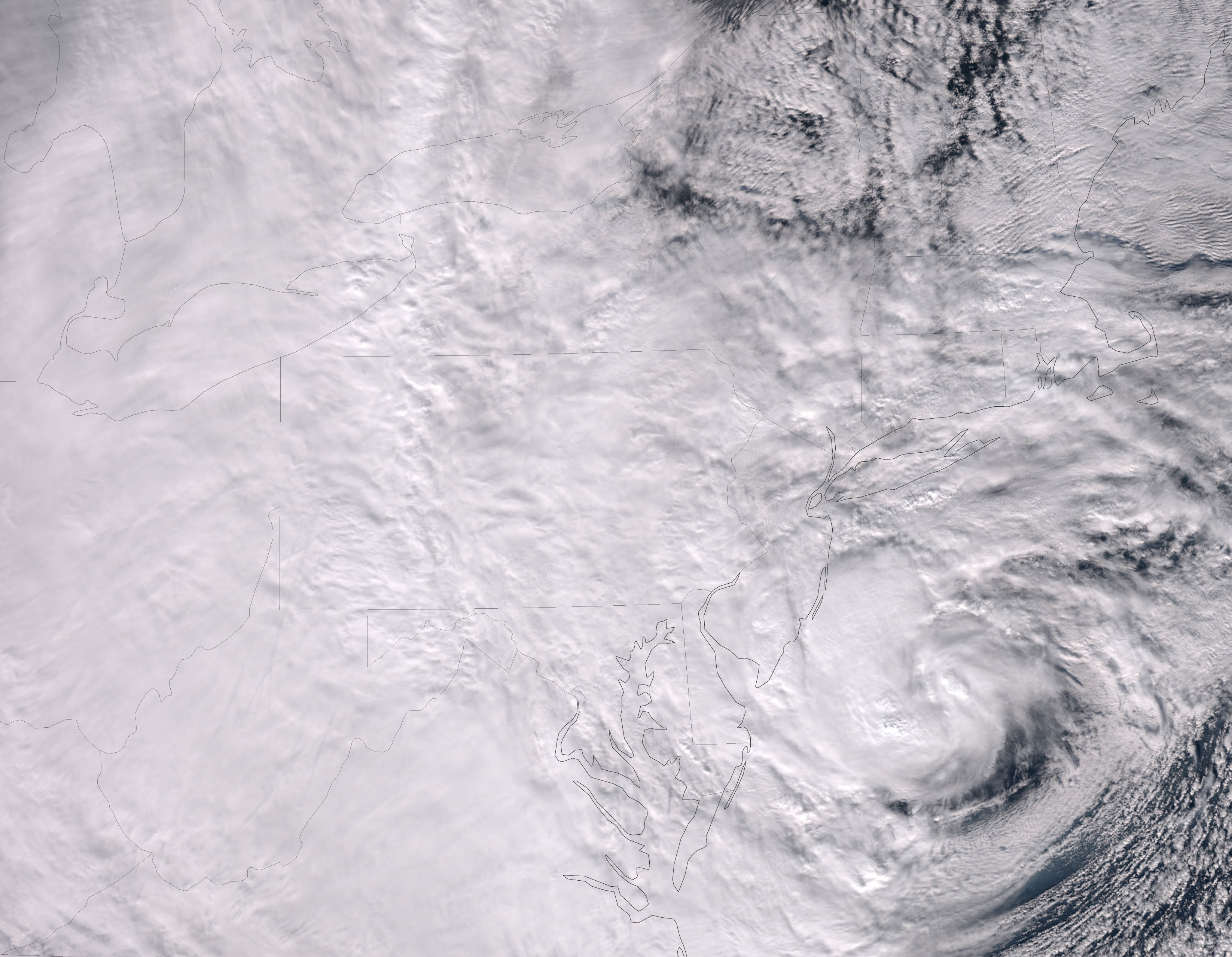 On our wedding day in 2011, the northeast of the United States was blanketed by a freak snowstorm. Travel in and around Philadelphia was nearly impossible, our wedding was delayed, and some guests had to cancel. Later, a good friend sent me this as a gift, a satellite photo of our wedding day.