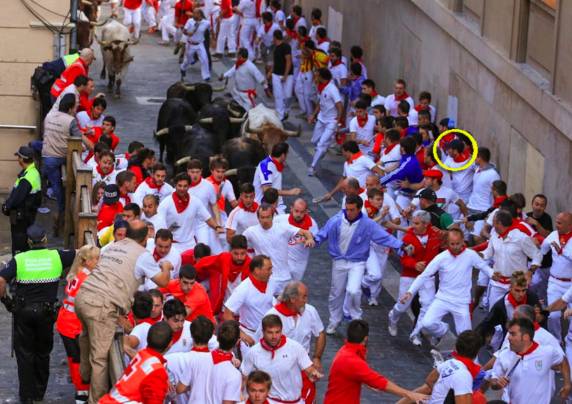 We started to strategize. We’d told people to look for us somewhere slightly past the flamme rouge, and now we tried to figure out where to best be seen on TV. Amy and I both have degrees in television production, and I spent the last dozen years before this trip working at a sports network. With the lead riders fast approaching, and now on the mountainside roads winding their way towards the summit, we needed to make a decision. We were on the outside of a wide turn. I figured, with the shortest distance between two points being a straight line, the lead rider, heading uphill, would take the turn tight. This would force the motorcycle with the TV camera to take the turn wide, shooting towards the tight side. I hopped the barriers and ran across the road, out of the view of the local gendarmerie. I stood alone, facing a good hundred spectators on the opposite side, many looking at my ridiculous outfit, which I wore specifically to stick out like a sore thumb. In that endeavor, I was successful. I looked like an idiot. In others, I would not be as successful, as we’ll see.