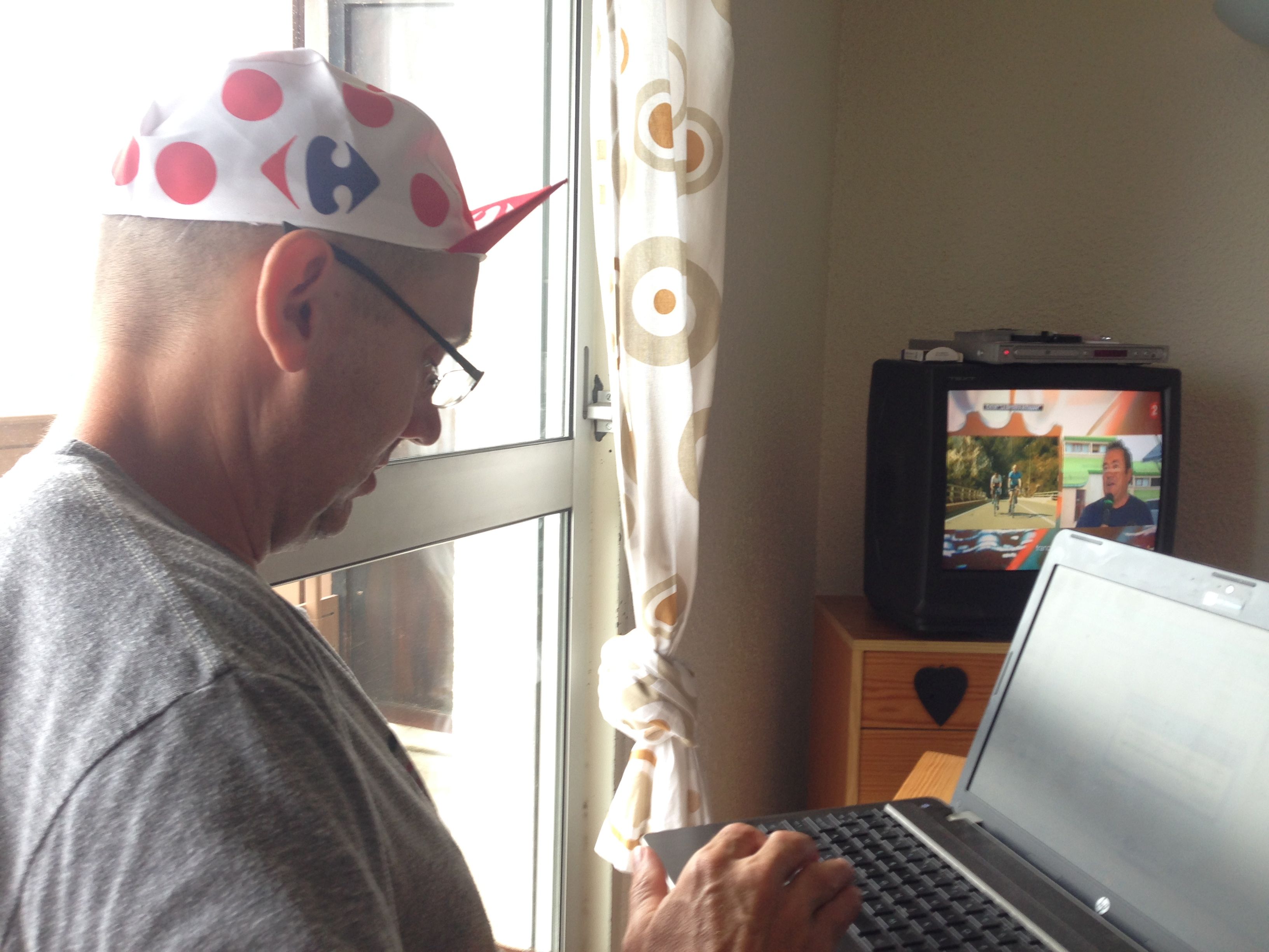 After that, a flurry of riders went by, and soon enough, it was all over, with a trickling of team and official cars coming by, and then nothing more. For all the build-up, all the excitement, all the days of preparing for this moment, it was over within minutes. We grabbed our table and chairs, and went inside the condo. We took naps. We played cards later that night, and ate leftovers from our ill-fated excursion to Carrefour. Rick wore his polka-dotted hat.