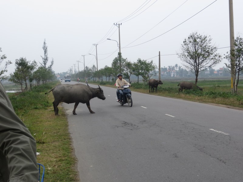 While SE Asia dogs are very good at crossing the street, water buffaloes are not