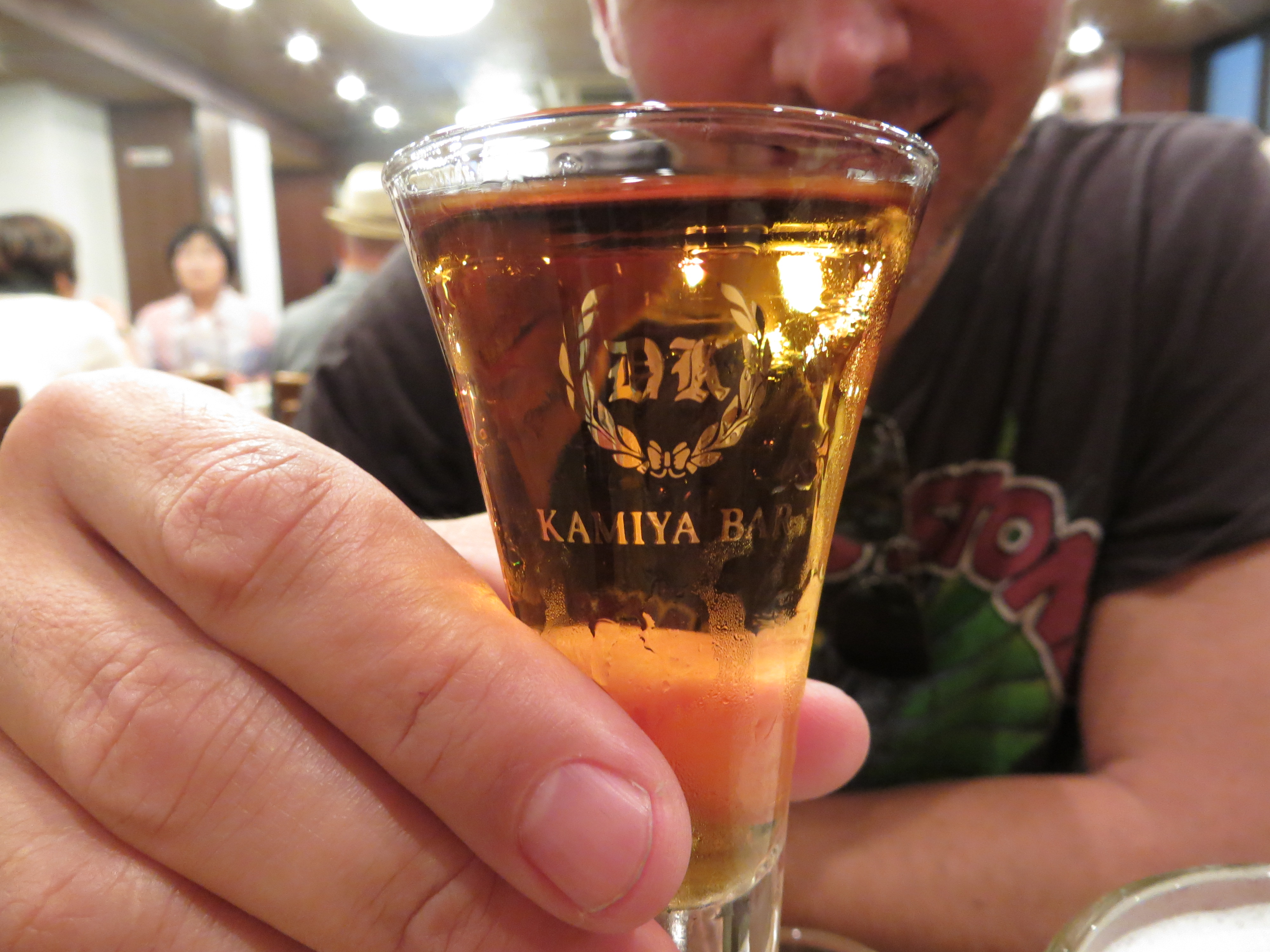 John drinking Denki Bran, a drink that dates back to the Meiji Era, at Kamiya Bar.