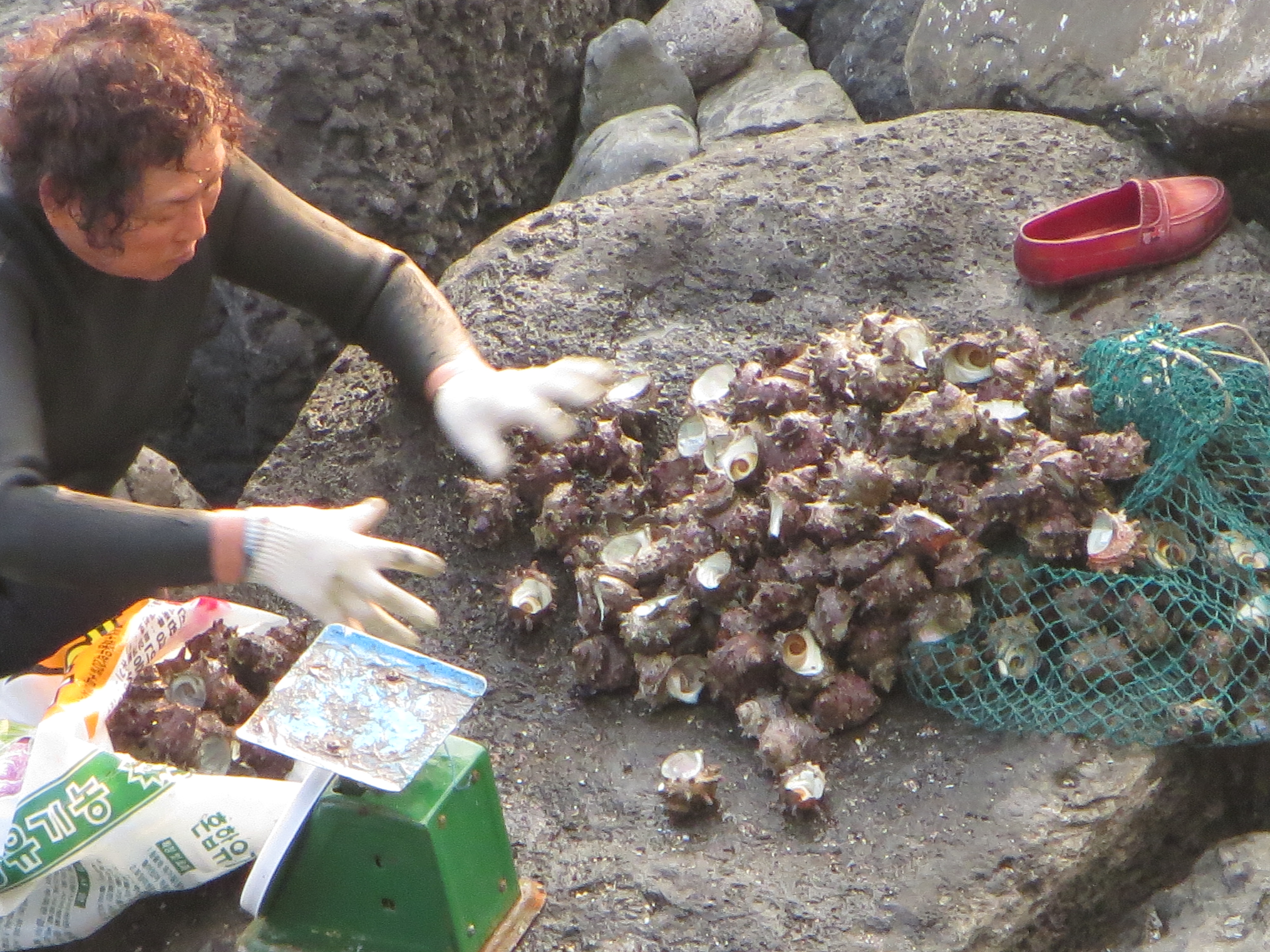 Lady divers sorting their booty.