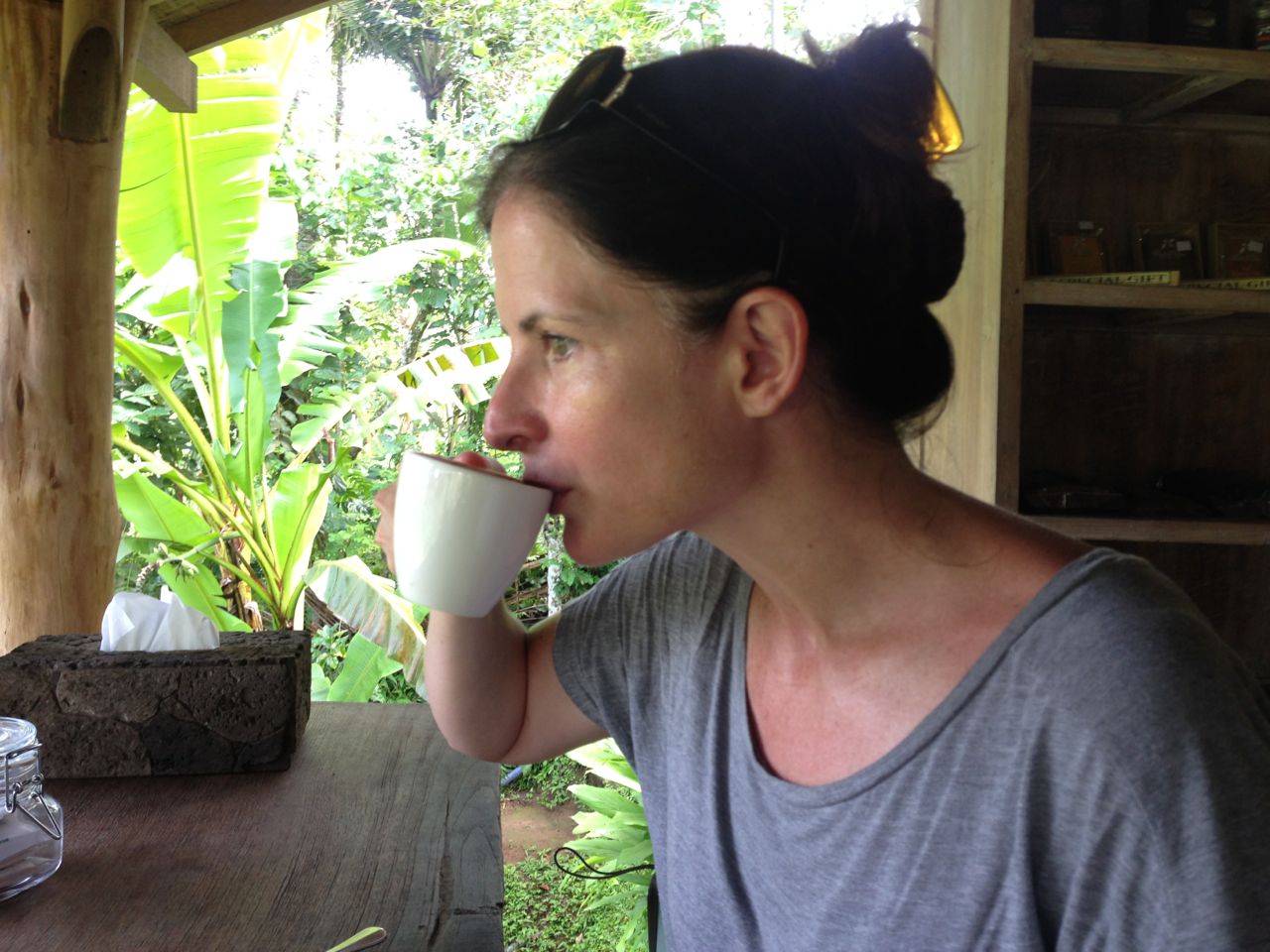 Me drinking the poop coffee